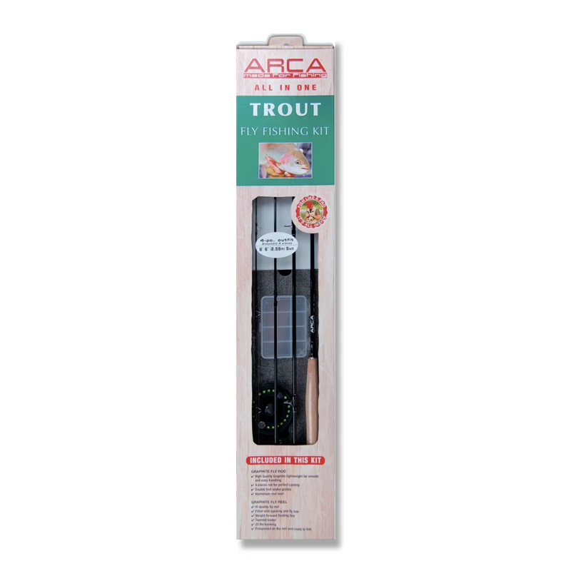 Avec cet Arca All-in One Trout Fly Fishing Kit, vous êtes prêt à pêcher à la mouche avec des mouches sèches et des nymphes pour la truite ou le poisson blanc dans les rivières et les étangs, à courte et moyenne distance. La canne 4 pièces est livrée avec un moulinet et son backing, une ligne de mouche et un bas de ligne effilé pour que vous puissiez commencer tout de suite. Parfait pour ceux qui veulent commencer à pêcher à la mouche, mais aussi un excellent ensemble pour les pêcheurs à la mouche avancés. Vous pouvez choisir entre une version 9’ et une version 10’.