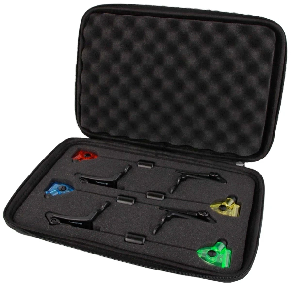Le Sky Chaser Rod Pod Set est parfait pour le carpiste moderne. Le Sky Chaser rod pod est adapté à la pêche avec 5 cannes et est entièrement réglable en longueur et en hauteur. Cela vous permet d’ajuster le rod pod à tout type de surface ou d’endroit de pêche. L’ensemble de haute qualité Ultimate Bionic Bite Alarm se compose de 3 détecteurs électroniques avec une centrale correspondante. L’ensemble est étanche et possède de nombreuses fonctionnalités telles que le réglage du volume, de la sensibilité, de la couleur des LED et de la tonalité. Des tonalités différentes sont utilisées pour indiquer si le poisson se rapproche ou s’éloigne du détecteur. Les détecteurs sont équipés de barres de maintien détachables et d’une connexion pour un balancier lumineux. La centrale a une portée allant jusqu’à 220 mètres !