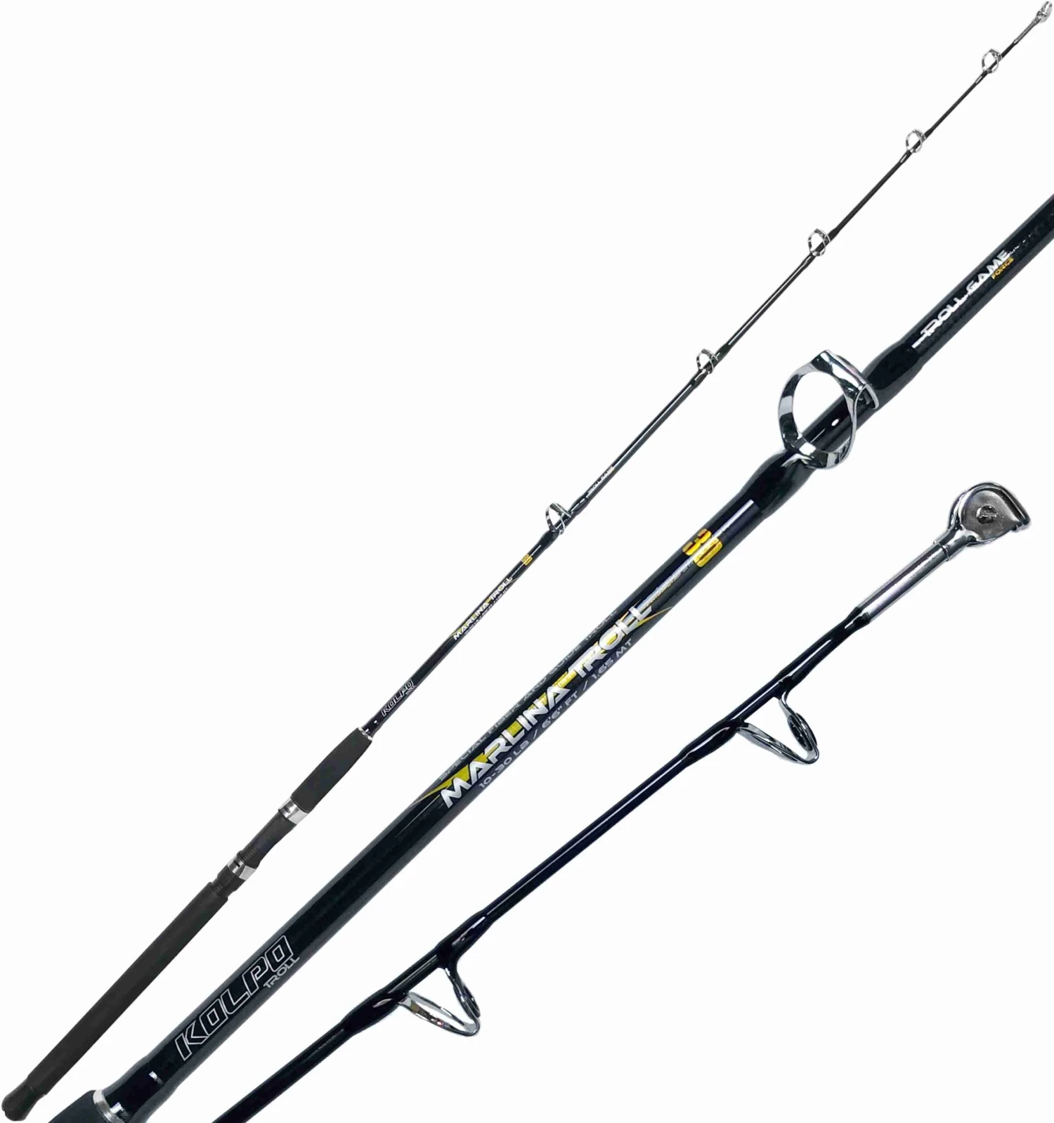 La Kolpo Marlina Troll est une canne à bateau très fine et puissante qui a été développée pour la pêche à la traîne en mer mais qui est également excellente pour la pêche en haute mer. La canne est construite d’une seule pièce et équipée d’un manche en EVA de très haute densité, ce qui permet de conserver une bonne prise même lorsque vos mains sont mouillées. Elle est équipée d’anneaux revêtus de céramique, d’un scion à rouleau et d’un raccord de cardan à l’extrémité permettant d’attacher la canne à une ceinture spéciale pendant la récupération. Une canne à pêche de qualité et un excellent rapport qualité-prix !