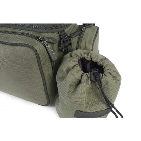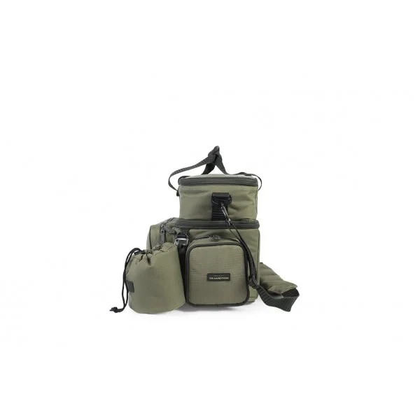 Le Tackle & Bait Stack est le sac de transport par excellence pour tous vos aliments, appâts et matériel divers. Il y a un compartiment réfrigérant sur le dessus, séparé du sac réfrigérant principal, ce qui signifie que vous pouvez garder vos appâts à l’écart de vos autres équipements si nécessaire. Il y a également un support pour une bouteille de gaz, qui se fixe avec notre clip de transition unique. De plus, vous pouvez ajouter le Transition Cool Pouch, disponible séparément, sur le dessus du sac et le fixer à l’aide des poignées.