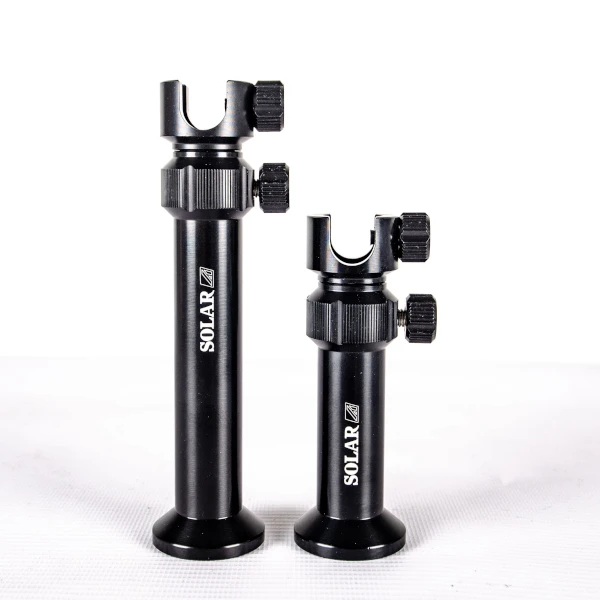 Les Supports de montage Solar A1 en aluminium sont destinées à placer facilement votre installation de buzzer bar sur, par exemple, une terrasse ou un échafaudage. Elles sont livrées par set de 2 pieds. Grâce à l’aluminium, ils sont légers, et sont disponibles en couleur noire. Les 2 pieds font 100mm et 140mm, et ils sont tous deux réglables. En outre, ces supports sont équipés d’un système de fixation de la barre de buzzer, de sorte qu’ils ne peuvent jamais tourner. Conviennent à toutes les barres de buzzer Solar A1 et bien d’autres. Très faciles à visser à travers un petit trou dans le pied avec, par exemple, une vis à bois. Ces supports de montage Solar A1 en aluminium ne manqueront peut-être pas dans votre équipement de pêche à la ligne !