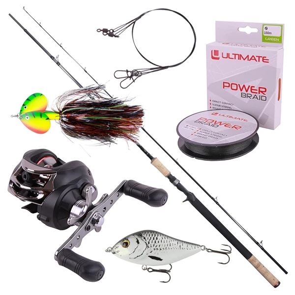 Le set pour brochet est idéal pour pêcher le brochet avec des leurres de poids moyen ! Dans cette offre, vous trouverez une puissante canne à lancer Ultimate Pike Caster en deux parties et un moulinet casting Ultimate Caststar. Cette combinaison est idéale pour la pêche au shad, au crankbait, au spinnerbait ou au jerkbait. Pour compléter cet ensemble, vous recevrez une tresse, des bas de ligne en fluorocarbone, un Mega Blade et un Wicked Willy jerkbait ! Cela vous mènera directement au bord de l’eau pour attraper votre nouveau RP !